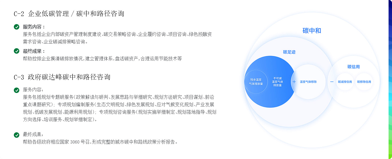 - 提供基于全生命周期的产品碳足迹盘查服务,支持国外国内各项标准,涵盖各阶段全流程,数据更精确,并可支持各级排放源原材料向上溯源:与COC等国内外认证机构合作,提供一站式产品碳足迹认证及低碳产品、绿色产品标签获取服务,提升产品竞争力。